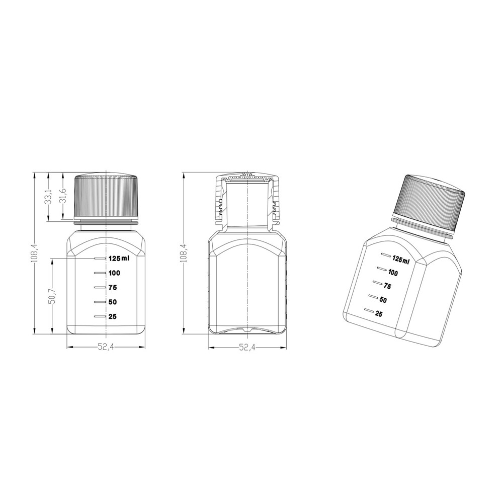 125 mL Transparent Reagent Bottle (Sterile,RNase & DNase Free,Round Shoulder,Proof-leak Cap)